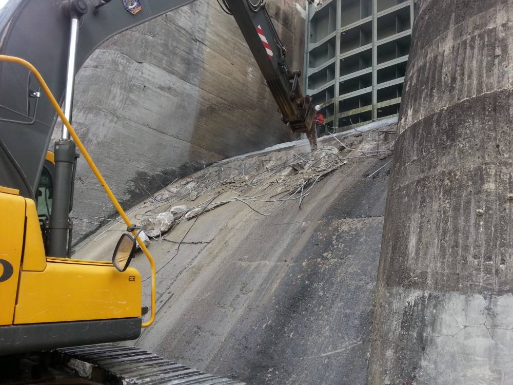 버스터파쇄는 목적물 천공에 의한 직경(T=125~200mm)에 유압버스터(헤드) 삽입하여 콘크리트(철근.무근.암반) 1차 깨기 후 2차 장비(백호우)압쇄기에 의한 구조물깨기로써...